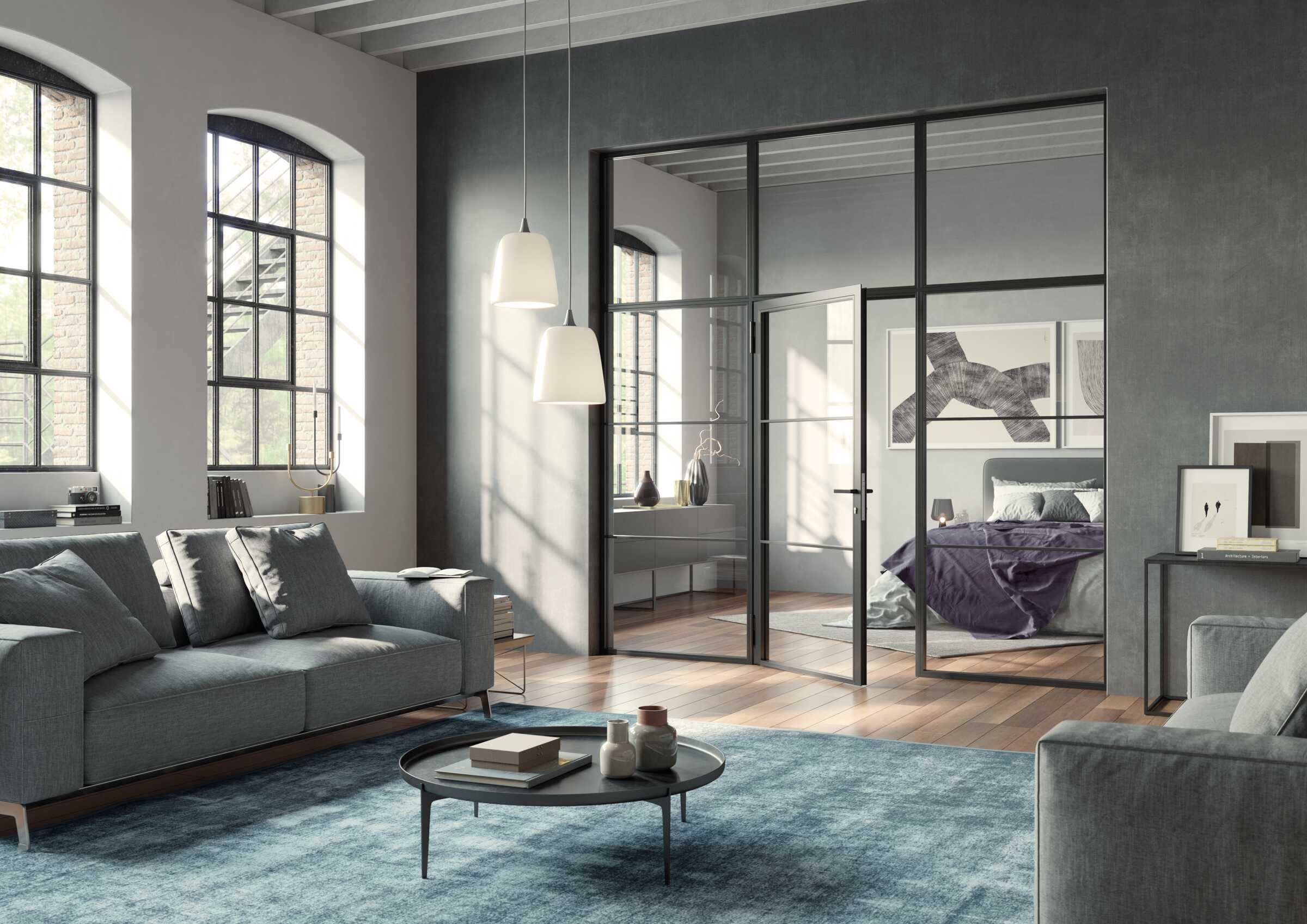 Die Stahl-Lofttüren im angesagten Industrie-Look sorgen für maximale Transparenz und lichtdurchflutete Räume. Sie sind die optimale Lösung zur Trennung und gleichzeitigen Verbindung von Wohnbereichen.